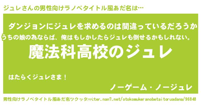| 胡散臭い通販商品みたいなあだ名 | 『テレビで話題の高麗人参…その名も「ジュレ」』 |
