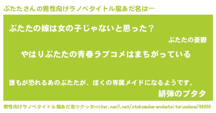 | 胡散臭い通販商品みたいなあだ名 | 『幸せが訪れる高級そうな壺…その名も「ぶたた」』 |
