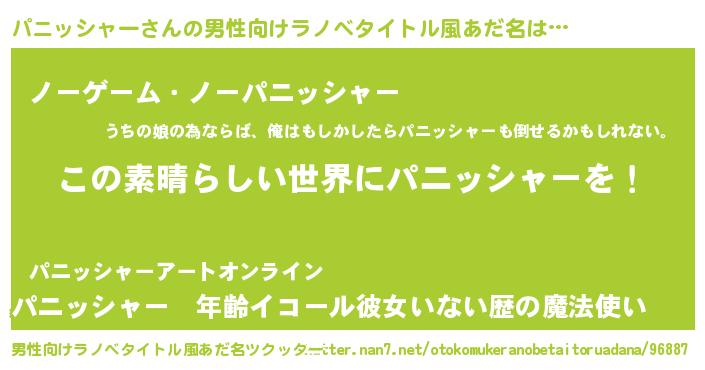 | 意味不明あだ名 | 『住所不定無職パニッシャー(6歳)』 |