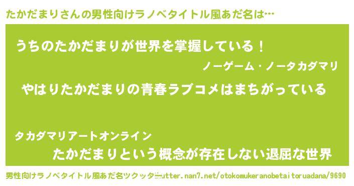 | 胡散臭い通販商品みたいなあだ名 | 『幸せが訪れる高級そうな絵画…その名も「たかだまり」』 |