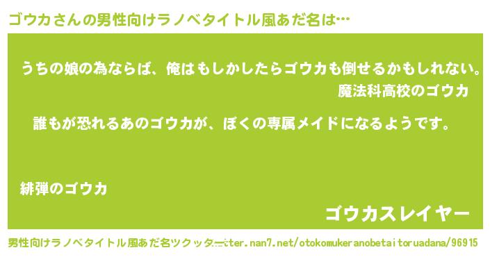 | ファンタジー風あだ名 | 『ゴウディッシュ』『エターナルゴウカー』 |