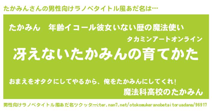 | ヒーロー風カッコイイあだ名 | 『サイバー戦士タカミン』『仮面タカダー』 |
