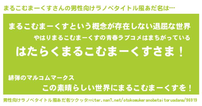 | ヘコむあだ名 | 『まるこむまーくす(笑)』『つくし』 |