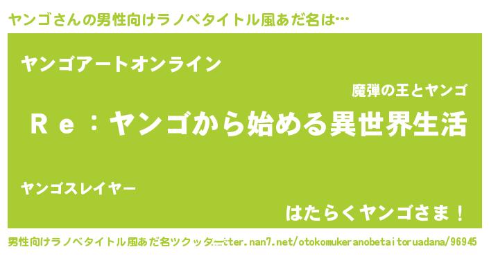 | 女子向けラノベタイトル風あだ名 | 『闇のヤンゴ』『首の姫と首なしヤンゴ』 |