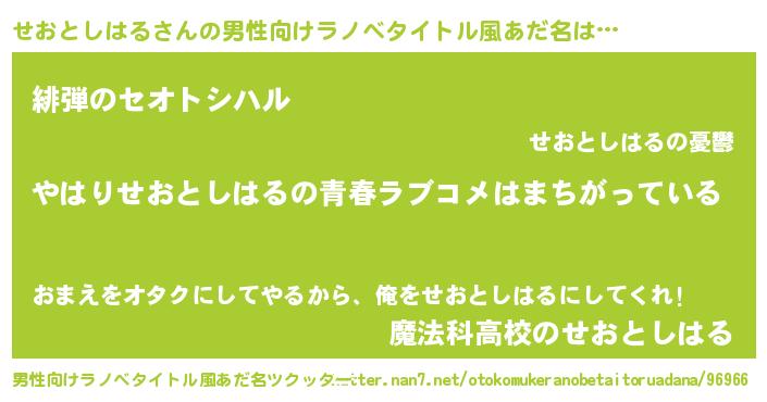 | 意味不明あだ名 | 『せおとしはるフォーエバー』 |