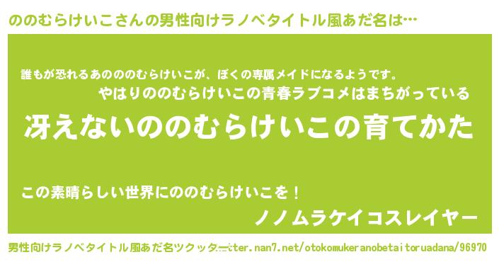 | 女子向けラノベタイトル風あだ名 | 『男装ののむらけいこの憂鬱な任務』 |