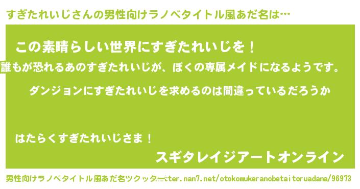 | 女子向けラノベタイトル風あだ名 | 『すぎたれいじは平凡を望む』 |