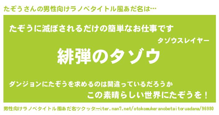| ヒーロー風カッコイイあだ名 | 『仮面タゾダー』『炎刃騎士タゾ』 |