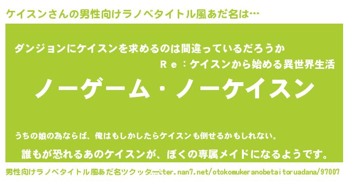 | 女子向けラノベタイトル風あだ名 | 『死神ケイスンの再婚』『闇のケイスン』 |
