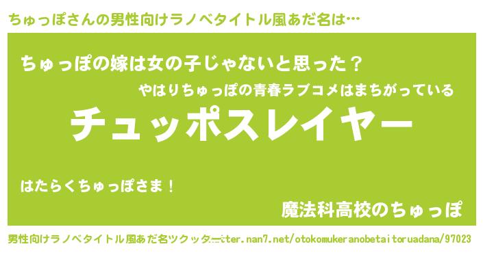 | 胡散臭い通販商品みたいなあだ名 | 『信頼と実績のサプリメント…その名も「ちゅっぽ」』 |
