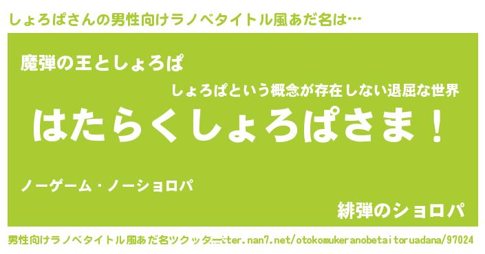 | 意味不明あだ名 | 『住所不定無職しょろぱ(10歳)』 |