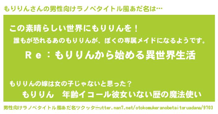 | 女子向けラノベタイトル風あだ名 | 『もりりんストレイドッグス』 |
