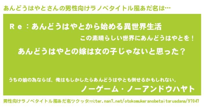 | 意味不明あだ名 | 『とにかく怪しいあんどうはやと』 |