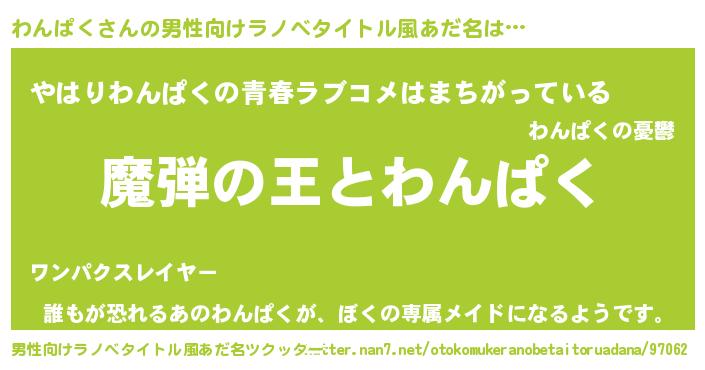 | 女子向けラノベタイトル風あだ名 | 『わんぱくが死なない童話 林檎のわんぱくの診療簿』 |
