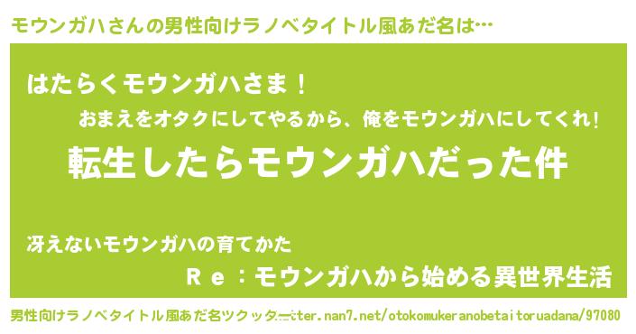 | 胡散臭い通販商品みたいなあだ名 | 『テレビで話題のアガリクス…その名も「モウンガハ」』 |