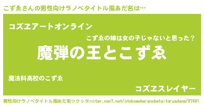 | 意味不明あだ名 | 『住所不定無職こずゑ(11歳)』『自称こずゑ』 |