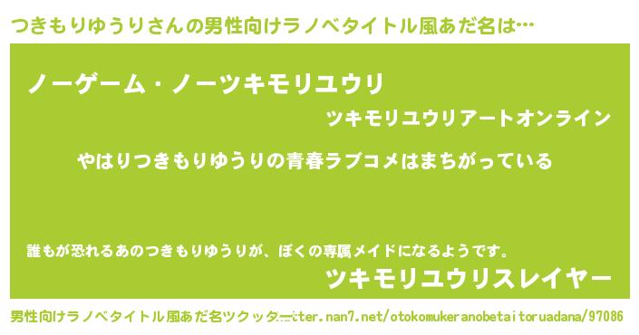 | 女子向けラノベタイトル風あだ名 | 『つきもりゆうりの雑貨屋さん』 |