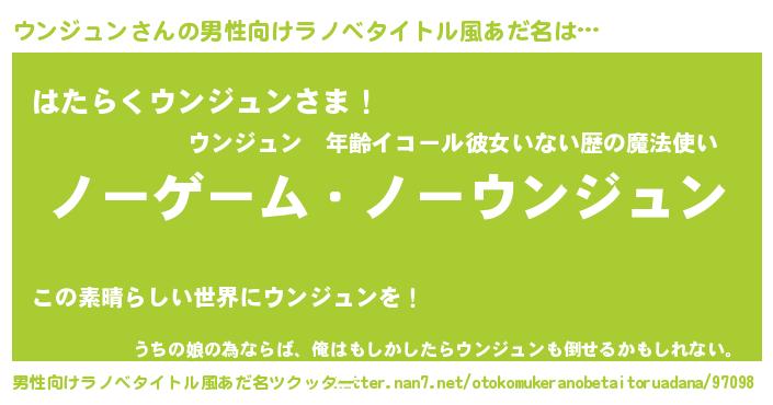 | 伝説のあだ名 | 『救世主となる錬金術士ウンジュン』 |