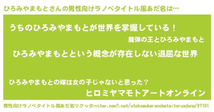 | 女子向けラノベタイトル風あだ名 | 『異世界で失敗しない100のひろみやまもと』 |