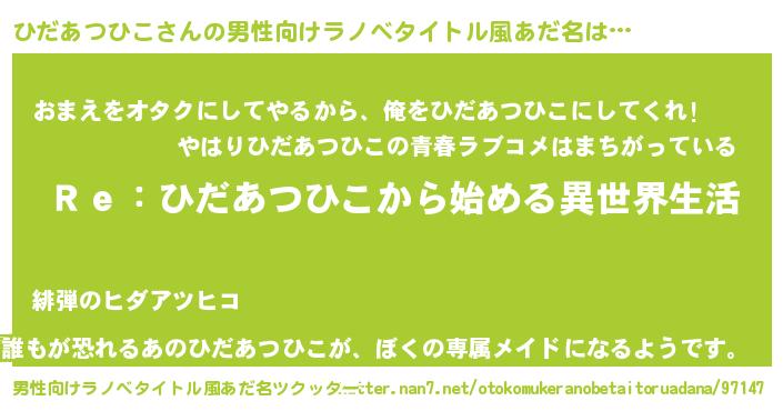 | ヒーロー風カッコイイあだ名 | 『究極戦士ヒダアツヒコ』『暗黒騎士ヒダ』 |