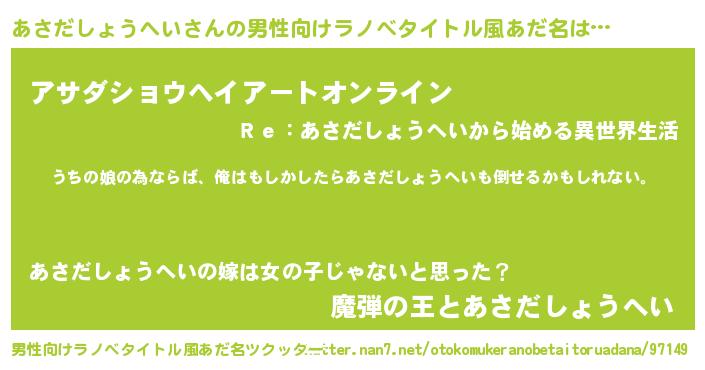 | ファンタジー風あだ名 | 『エターナルアサダショウヘイー』 |