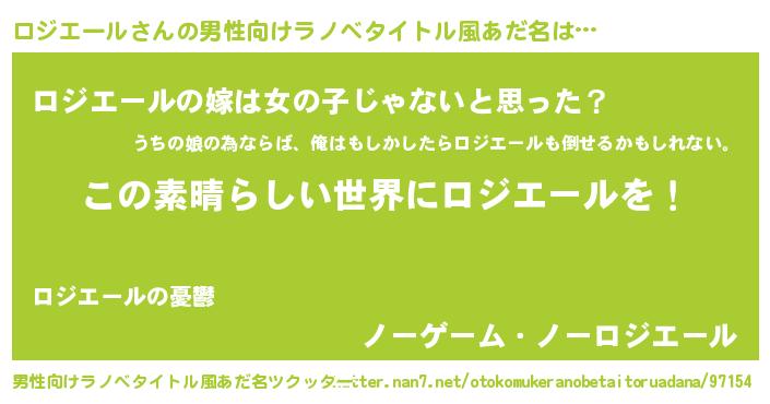 | 女子向けラノベタイトル風あだ名 | 『乙女ゲームの破滅フラグしかない悪役ロジエールに転生してしまった…』 |