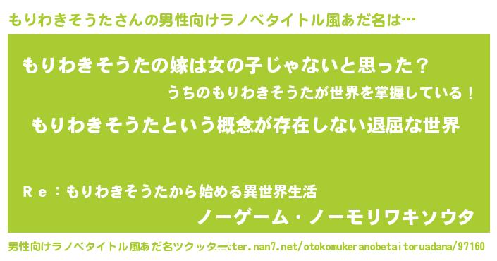 | 女子向けラノベタイトル風あだ名 | 『異世界で失敗しない100のもりわきそうた』 |