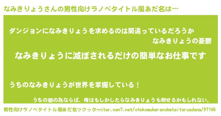 | ヒーロー風カッコイイあだ名 | 『炎刃騎士ナミ』『スーパーナミキリョウ』 |