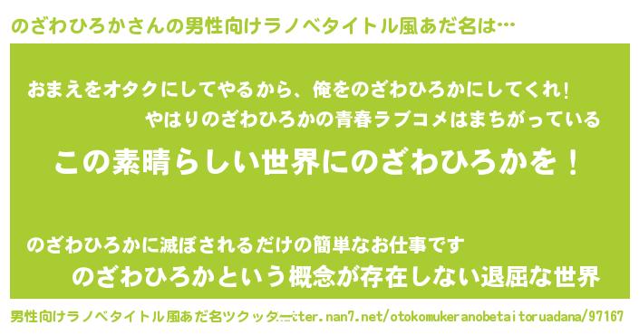 | 女子向けラノベタイトル風あだ名 | 『乙女ゲームの破滅フラグしかない悪役のざわひろかに転生してしまった…』 |
