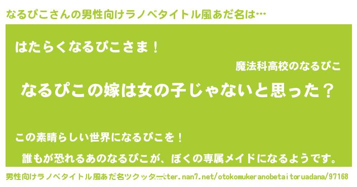 | 女子向けラノベタイトル風あだ名 | 『なるぴこの卵を拾いまして』 |
