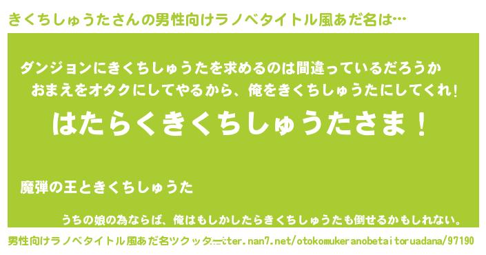 | 伝説のあだ名 | 『解き放たれた魔法使いきくちしゅうた』 |
