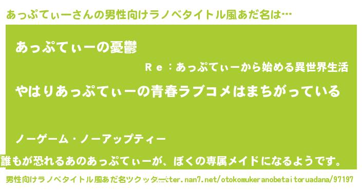 | ファンタジー風あだ名 | 『エターナルアップティーー』 |