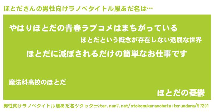 | 胡散臭い通販商品みたいなあだ名 | 『運命の人と巡り会える高級そうな壺…その名も「ほとだ」』 |