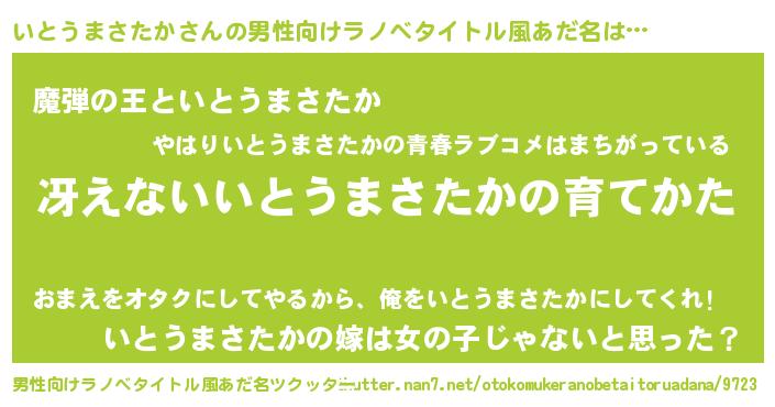 | 意味不明あだ名 | 『住所不定無職いとうまさたか(84歳)』 |