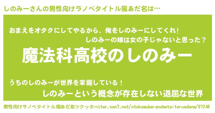| 女子向けラノベタイトル風あだ名 | 『しのみーなんてお断りですっ。』 |