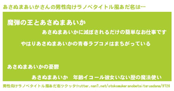 | 女子向けラノベタイトル風あだ名 | 『あさぬまあいかの雑貨屋さん』 |