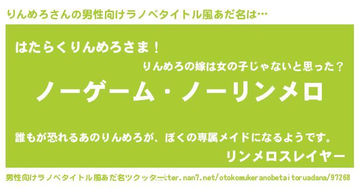 | ヘコむあだ名 | 『りんお』『りんめろ(苦笑)』 |