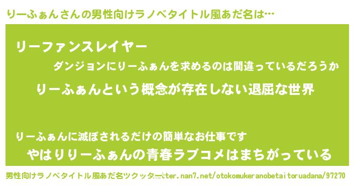 | 意味不明あだ名 | 『永久保存りーふぁん』『自称りーふぁん』 |