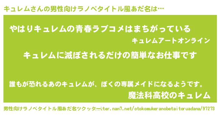 | 女子向けラノベタイトル風あだ名 | 『横柄キュレムと宰相陛下』 |