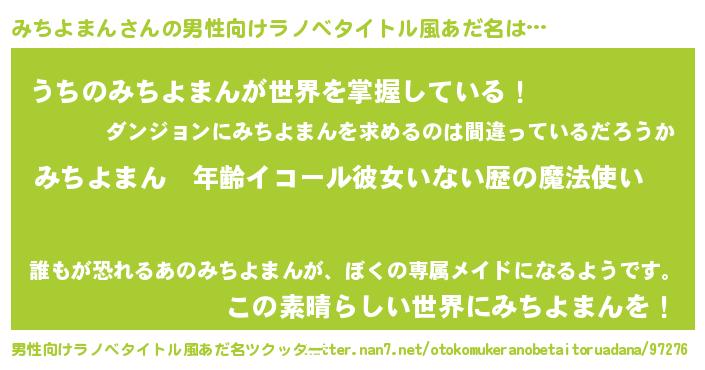 | 女子向けラノベタイトル風あだ名 | 『みちよまんの玉の輿計画!』 |