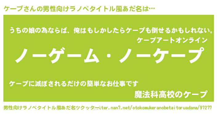 ケープさんの男性向けラノベタイトル風あだ名をツクッター!