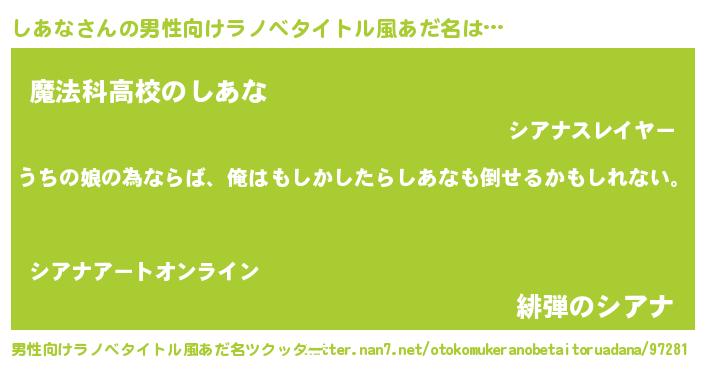 | 女子向けラノベタイトル風あだ名 | 『しあな伯爵の花嫁』 |