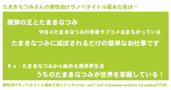 | 胡散臭い通販商品みたいなあだ名 | 『あなたにだけ特別に提供する世界で10本だけ現存している希少なブランデー…その名も「たまきなつみ」』 |