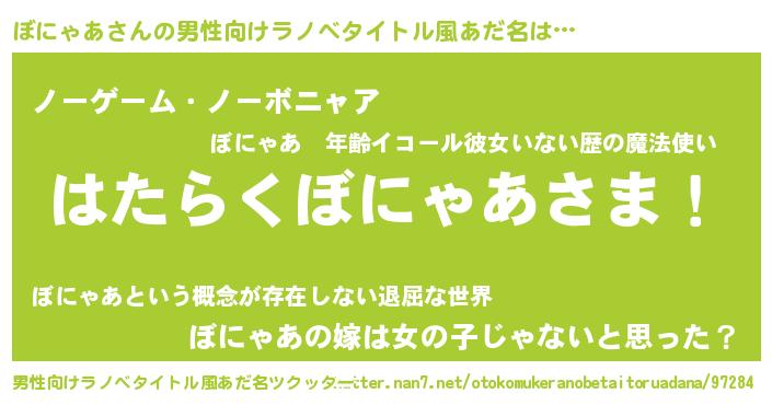 | ヒーロー風カッコイイあだ名 | 『正義の使者ぼにゃあ』『幻影騎士ボニ』 |