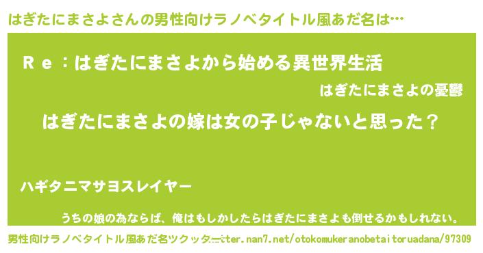 ポケモン風あだ名 | 『ヒハギタニマサヨ』『ハギセウス』 |