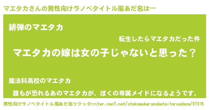 | 女子向けラノベタイトル風あだ名 | 『マエタカ様がみてる』 |