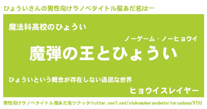 | ヒーロー風カッコイイあだ名 | 『仮面ヒョダー』『サイバー戦士ヒョウイ』 |