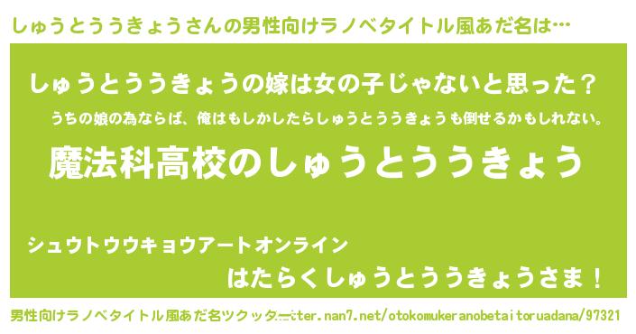 | 意味不明あだ名 | 『自称しゅうとううきょう』 |