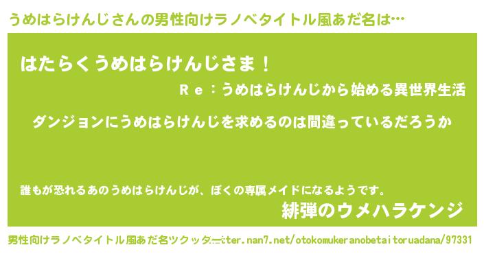 | ヘコむあだ名 | 『うめっ子』『うめはらけんじ(遠い目)』 |