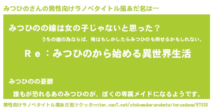 | 女子向けラノベタイトル風あだ名 | 『闇のみつひの』『みつひの様がみてる』 |